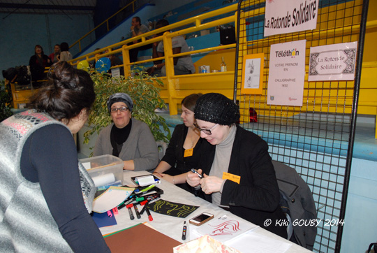 les bénévoles du centre social La Rotonde La beauté du verre personnalisé Les mille et un arts de la Calligraphie’’