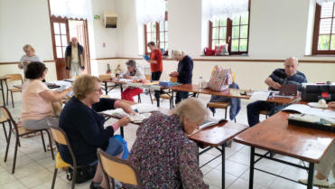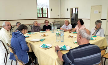 Deja deux ans !Joliesretrouvailles,celundidanslasallemunicipaledeMontlevon,aimablement pretéeparlaMunicipailté,pourfêterladeuxièmeannéedel’atelierlibrede peinture,danslacommune,animéparJacquelineGouby,dontl’anniversaire était également tout proche.C’estavecanthousiasme,qu’ilavaitétédécidédeseretrouveràMontlevon, pourunejournéecompléte,autourd’unrepasd’anniversairesuivid’uneséance de peinture.Apartquelquesvacanciers,toutlemondeavouluparticiperàcettejournéeun peu spéciale.C’estdoncautourdelatablequetoutlemondes’estinstallé,pourunappéritif maison avec ses amuses-gueule.Pourlerepas,leschosesétaientbienorganisées,puisquechacunavait préparé,sinonsaspécialité,toutdumoins,unplatquineferaitpasdoublon avecles autres,allant del’entréeau dessert.Surleprincipe dubuffet, chacunallait chercher; saladescomposées,quiche,viande,fromageetpatisserie dontladevenuecélèbrespécialitéde Chantal;legâteauPrincier,quidevientun incontournable des réunions de l’atelier.Pourfairesuiteàcemomentdepartageconvivial,latableétantdesservie,lasalles’esttransforméeen atelierdepeinture,oùtoutlemondes’est appliquéàtravailler,trésstudieusement, sur leur modèles.Puis,enfind’apres-midi,lafaimoula gourmandisesefaisantsentir,ungoûters’estorganiséautourdesdesserts,clôturant cette journée.Momentdedétenteetdeconvivialité,pourlesmembresdesateliersdepeinturede MontlevonetChâteau-Thierry,qui,auxdiresdechacun,devraitserenouvelerplus souvent.Lemessageestbiencomprisetenattendanttousleslundisdejuilletet août,l’ateliercontinue,avectoujourscetespritdetravaillerensembledanslajoieet la bonne humeur.