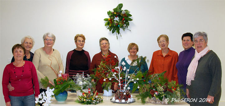 Cela fait plus de vingt cinq ans, que Janine Hoinant dispense son savoir dans la composition de somptueuse création, alors vous pensez bien que le mot vieillir n'a aucune signification dans cet atelier. Ce sont déjà de nombreuses saisons qui ont permis l'assemblage des fleurs et feuillages offerts par la nature mises en valeur par les artistes de l'A.F.A.S.A.
