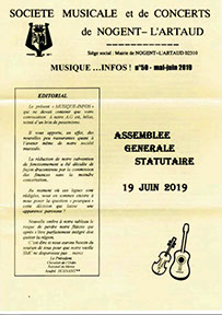 Créée le 15 juillet 1871, la SOCIÉTÉ MUSICALE et de CONCERTS est la plus ancienne des associations nogentaises en activité à ce jour, qu'elles soient culturelles ou sportives.