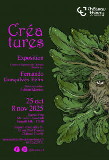 exposition des creatures de fernando gonçalvès - félix à u1. «La région de l’Omois (sud de l’Aisne), porte un riche héritage de contes, de légendes et de récits populaires transmis de générations en générations. Située à la croisée des influences des régions traditionnelles de la Champagne, la Brie, la Picardie, le Tardenois et le Valois, elle a vu se tisser au fil des siècles une tradition orale mêlant histoire locale, croyances rurales et merveilleux populaire. Ces récits naissent souvent autour de lieux marquants : des rochers étranges (Comme à la Hôttée du Diable ou des Géants à Coincy), une bois profond, comme la forêt du Retz, une abbaye comme celle de Notre-Dame de Longpont ou une rivière brumeuse comme l’Ourcq. Ces éléments du paysage deviennent le théâtre d’événements surnaturels ou mystérieux, mettant en scène diables, dames blanches, loups, géants ou objets enchantés. Ils servaient à instruire, effrayer ou distraire, mais aussi à expliquer des phénomènes naturels ou des faits historiques d'une manière symbolique. La tradition s'est transmise par la mémoire orale, souvent portée par les anciens, puis recueillie à partir du XIXe siècle dans des ouvrages ou des journaux locaux» Voila l’introduction du catalogue de l’éxposition «Créatures», suite à une étude lancée en 2021 par Thomas Guérin, archéologue, responsable de l’Unité archéologique de Château-Thierry. LIRE LA SUITE Texte et photos : Mairie de château-Thierry