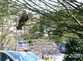 En se rendant à l'atelier libre de peinture qu'elle anime à la maison des arts de la médiathèque, Jacqueline GOUBY est restée émerveillée par un magnifique rapace venu se reposer quelques instants au pied du château médiéval.