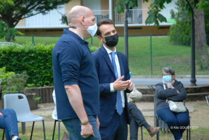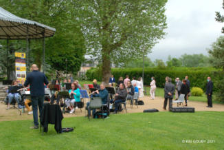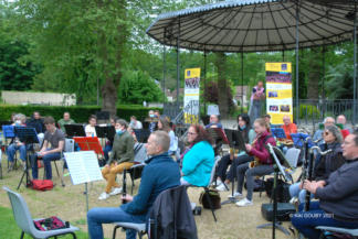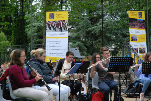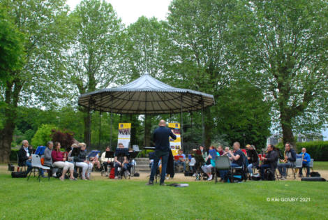 Aubade imprévue également pour des jeunes mariés et leurs familles, venus faire des photos dans le parc.