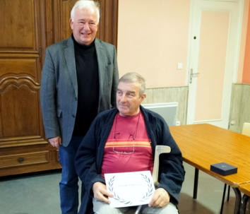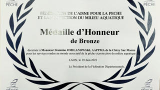un médaillé chez les «protecteurs du poisson» de chezy sur marne. Sympatique cérémonie, ce vendredi soir à Chézy sur Marne, en présence du Président de l’association ; Philippe GLEIZE et des membres du bureau, ainsi que Pierre BOURGEOIS; Président de la Fédération de l’Aisne pour la Pêche et la Protection du Millieu Aquatique et quelques pêcheurs. Ce n’était pas une réunion secrète, mais il y avait une ambiance de mystère, lors de cette réunion, dont le sujet devait être bien gardé jusqu’au dernier moment. Ce n’est que lorsque la réunion débuta et que Pierre Bourgeois prit la parole que le motif de la réunion fut révélé: il s’agissait de mettre à l’honneur un membre de l’association qui oeuvre depuis de tres nombreuses années au bon fonctionnement de l’association : Stanislas OMILANOWSKI (dit Stan). Quelle ne fut pas sa surprise, lorsque le président de l’AAPPMA de l’Aisne, sortit de son cartable, un diplôme et la médaille de bronze de l’association qu’il lui remit pour les nombreux services rendus au monde de la pêche à Chézy mais aussi dans les associations alentours. Pêcheur converti depuis sa plus tendre enfance, «Stan» n’a jamais cessé de fréquenter les bords de rivières, étangs et tous les endroits pouvaient se trouver de quoi alimenter sa passion. N’hésitant jamais à rendre service au sein des associations de pêche du secteur, Stan acquiert ainsi, une solide renommée dans le monde de la pêche.locale. A l’issue de cette cérémonie, Dominique FEDERSPIEL; ancien Président et Vice-Président actuel s’est vu remettre de la part de ses amis pêcheurs, une enveloppe, en remerciement du travail fourni et du service rendu pour remettre l’association en ordre de marche. Beaucoup d’émotions et de souvenirs échangés, ont cloturé cette séance peu ordinaire, devant un buffet apéritif.